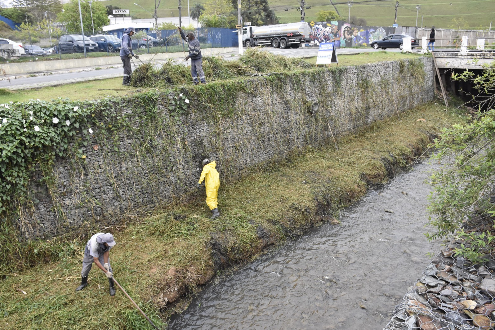Além da limpeza e desassoreamento dos rios e córregos, serviços de capinamento e varreção, bem como pintura de áreas públicas, seguem em diversos pontos da cidade.